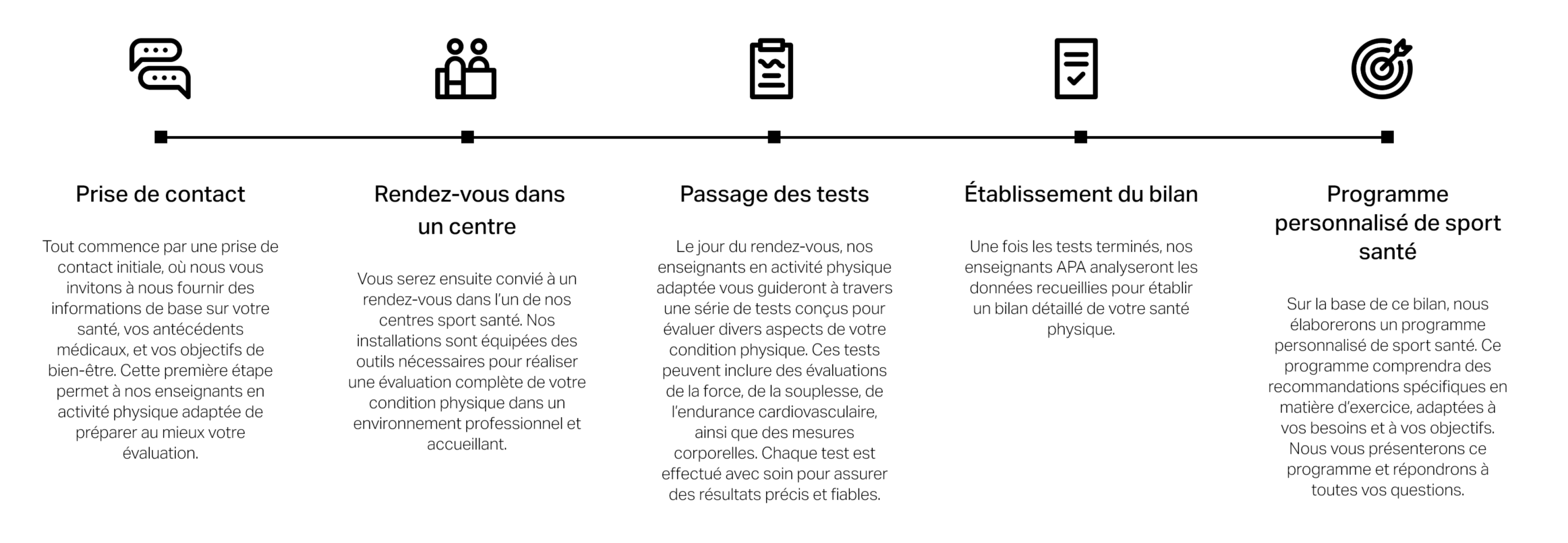 Avant de débuter chez Eden Concept, un bilan individuel Sport Santé est réalisé par le médecin de votre choix. Ce rendez-vous permet de confirmer vos aptitudes sportives et de définir précisément vos objectifs.